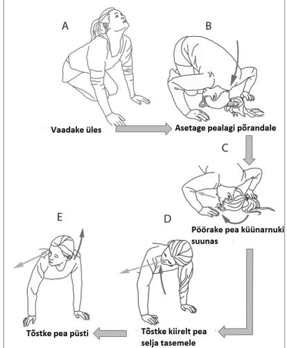 - Asetage oma pealagi (kui te seda ei suuda, siis otsaesine) põrandale ja suruge lõug vastu rinda